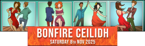 We welcome back Kingsfolk, our live ceilidh band – it’s their job to call out what to do and when… It’s lively, sociable, can get a bit sweaty but generally – whether or not you’re doing it right – it’s great fun.